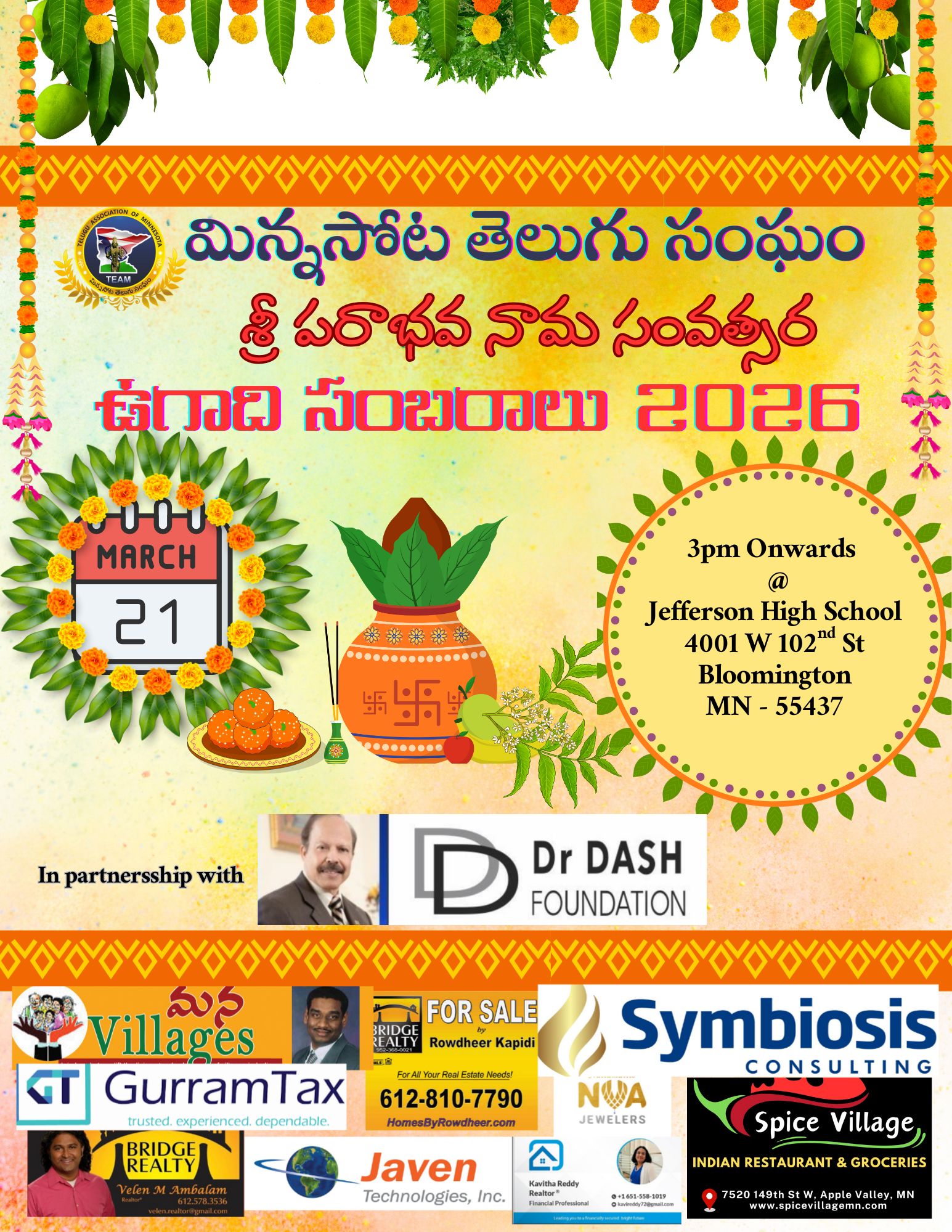 Foster harmony within the Telugu community and to share our diverse culture with the Greater Minnesota community.